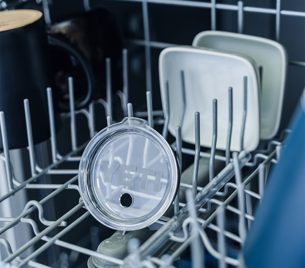 Так! Весь посуд YETI Rambler® можна мити в посудомийній машині. Кришки — на верхню поліцю, дрібні частини — у кошик для столових приладів.
